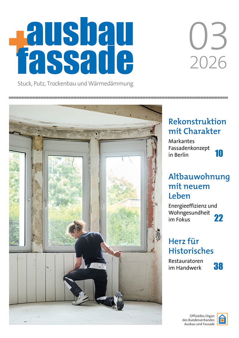 ausbau+fassade bietet seinen Lesern – Stuckateuren, Trockenbauern und spezialisierten Malerbetrieben – alle Informationen über Materialien, Systeme, Maschinen, Geräte sowie Anwendungsweisen für die Arbeiten an der Fassade und im Ausbau. Die „Chefsache“, der betriebswirtschaftliche Teil von ausbau+fassade, widmet sich explizit den Fragen der Betriebs- und Unternehmensführung und gibt konkrete Tipps für die Praxis. ausbau+fassade erscheint 11-mal im Jahr (mit einer Doppelnummer im Juli/August).