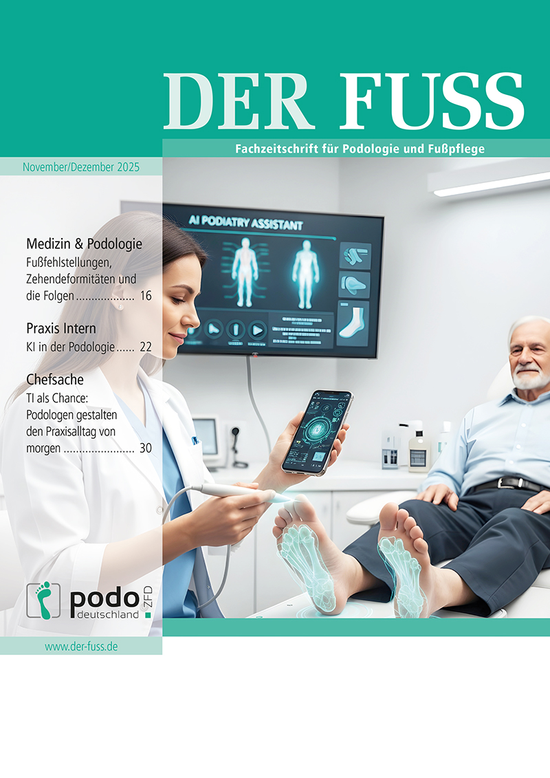 DER FUSS ist die Fußpflegezeitschrift für die Praxis aus der Praxis. Er berichtet über alle Arbeitsweisen und Arbeitsmittel, die in der medizinischen Fußpflegepraxis angewandt und genutzt werden. Dabei gibt der FUSS wertvolle Tipps zur Praxisführung und -einrichtung, Kundengespräche und Marketing.